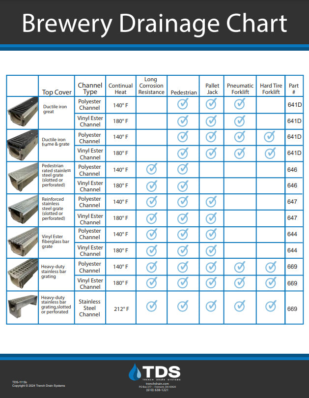 Check out drainage channels with our Polymer Concrete Brewery Drainage Chart.