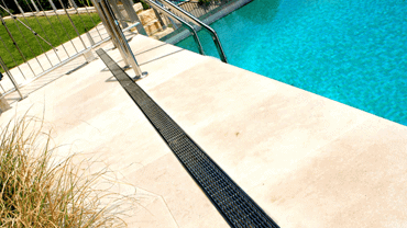 Pool drains keep excess water within the pool area while providing a safe play area for children and bare feet. Trench drain systems also redirect rainwater and keep it away from any surrounding structures such as a pool house.