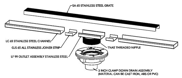 Featuring a stainless steel flanged drain with a bottom outlet, the FF 65 Series by Infinity Drain can get the job done. With five grating options, style is no concern as you install this linear drain.