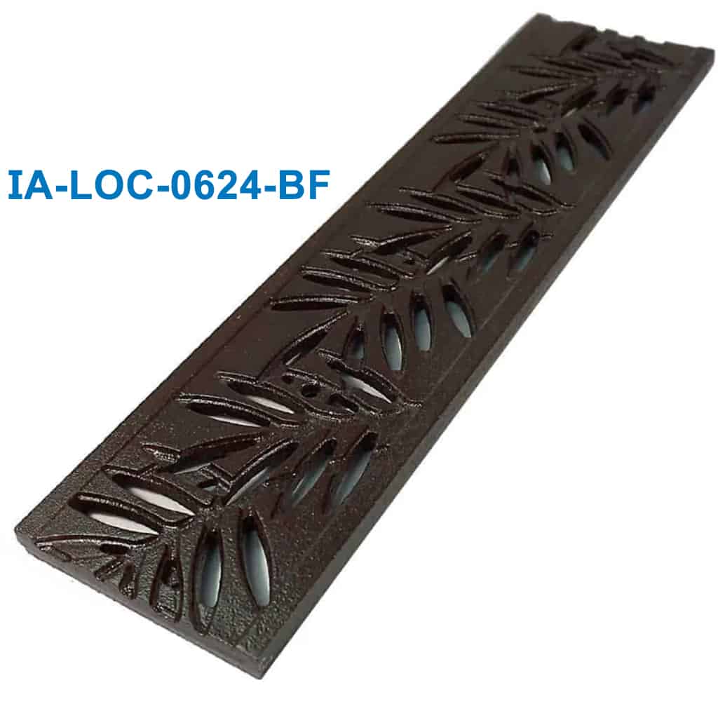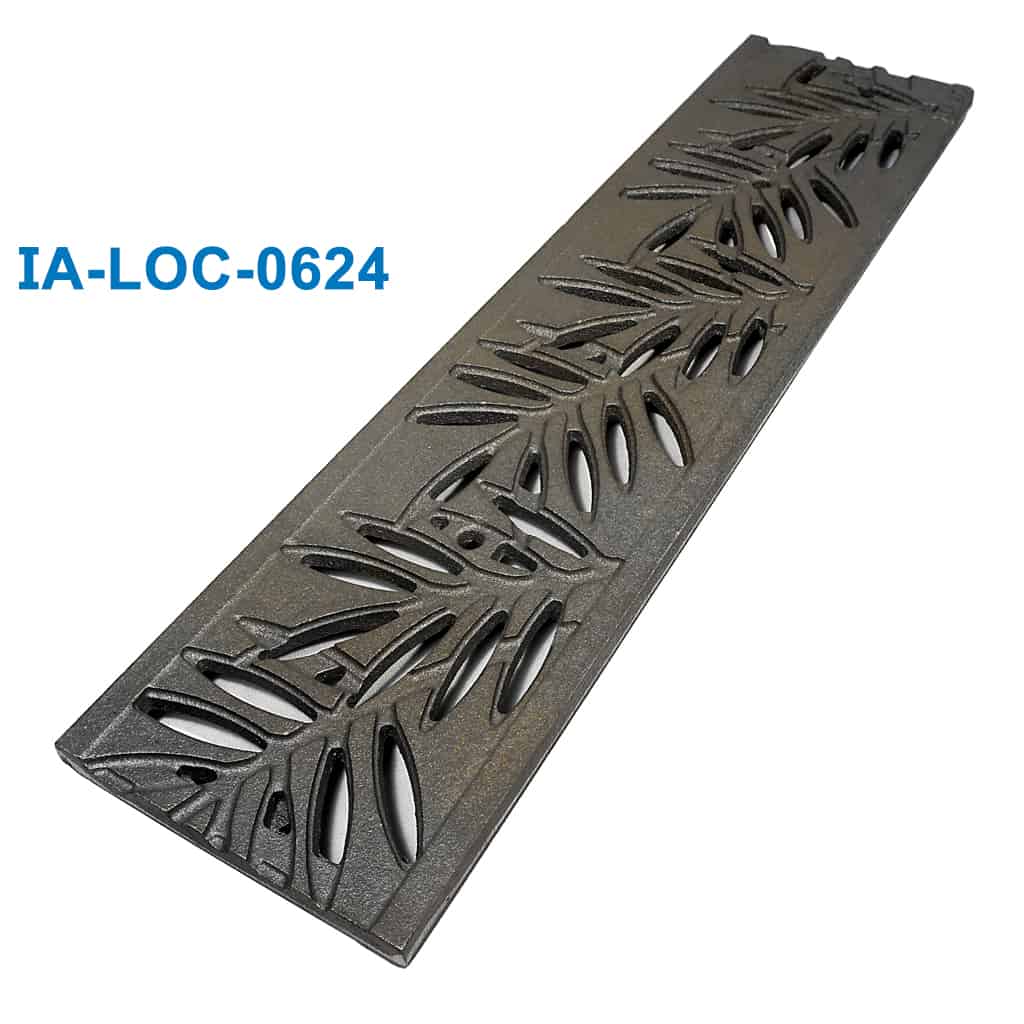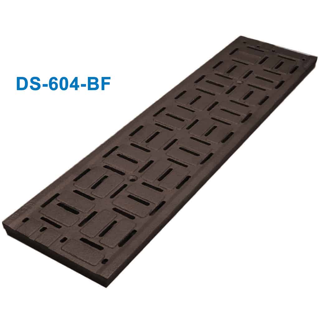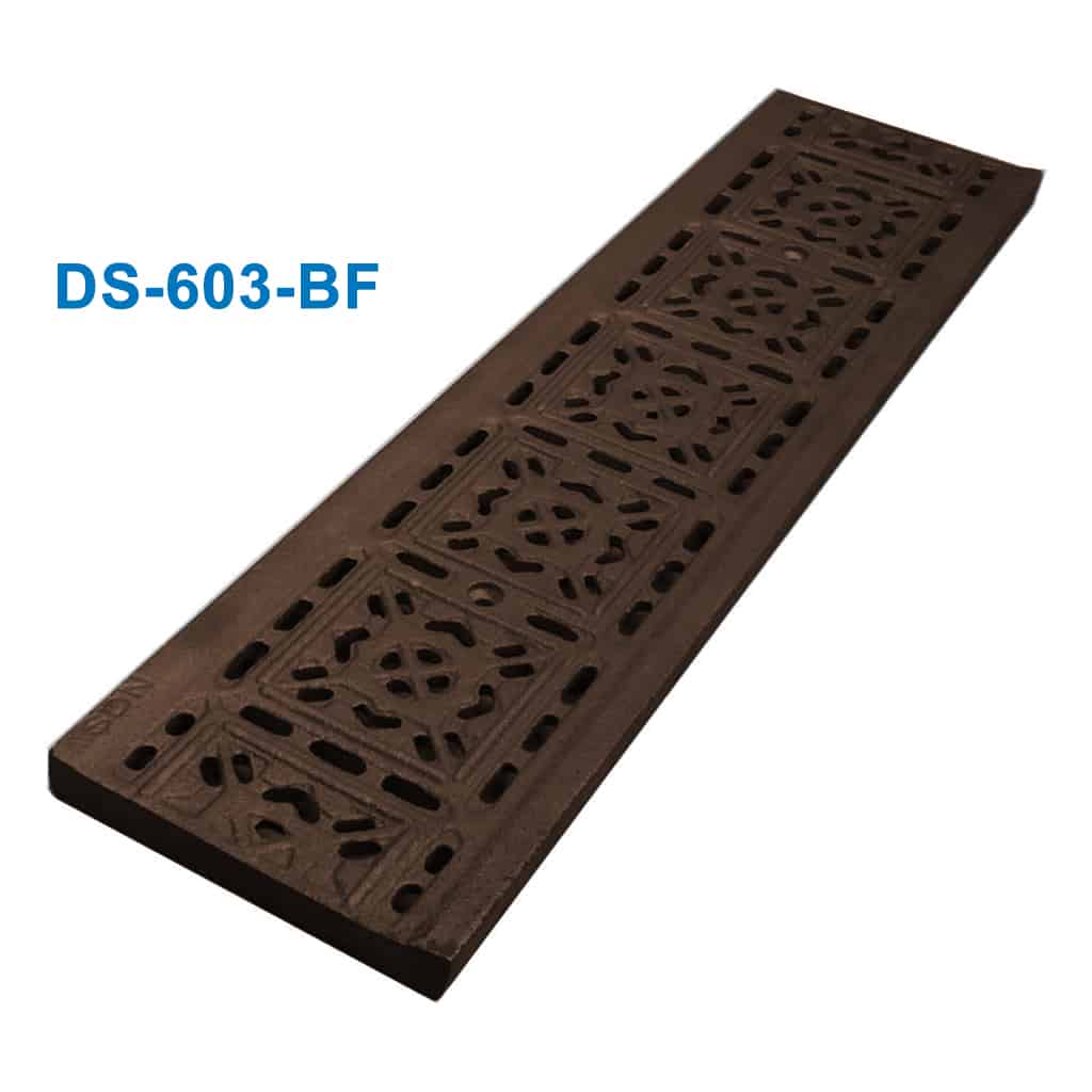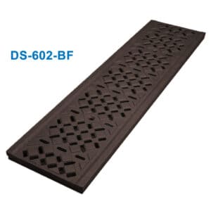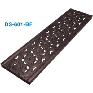 Dura Slope also features decorative iron grates by NDS and by IronAge Designs. Both durable and decorative, NDS’s line of decorative grates for the Dura Slope are ADA Compliant and heelproof. They are available in five patterns. Finish options are raw, powder coated, or Baked On Oil Finish (BooF).