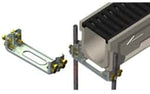 Installation chairs are the most efficient and economical means of setting up a precast trench system. The installation chair supports the ends of the channel, aligns and locks the joints rigidly together, and prevents the channels from floating. Adjusting channel elevation is easy. One chair is required for every joint. The chair is made from 1018 hot-rolled steel and has a zinc-plated finish