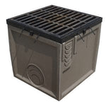 Designed by Trench Drain Systems to be compatible with POLYCAST® channels, this unique catch basin is 6-1/4″ x 24″ x 12″ and can be used as a riser, a tee, a 4-way, or an elbow. It connects to channels 600N through 625. Bottom knockouts allow for units to be stacked for increased depth and each side of the catch basin has embossed areas for knockouts to be used for accepting pipes, creating turns and other intersections.