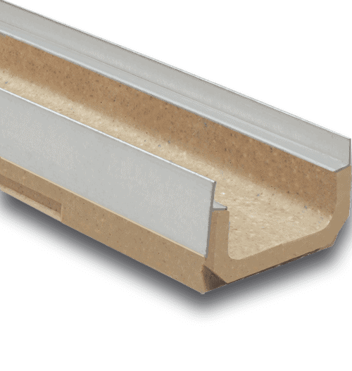 The built-in stainless steel edging serves several purposes. It provides protection for the sides of the channel and gives the completed project a more finished look. Similar products require an additional cost for metal railing covers. The edging also helps to prevent obstructions such as mulch, dirt or stones from entering the channel. Stainless steel edging is also robust and maintains its strength over time.