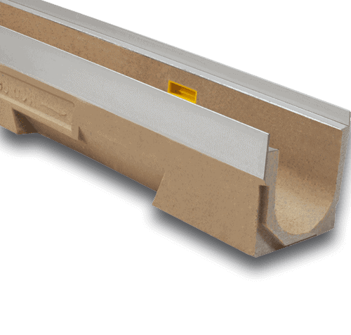 The ULMA U100KX is very similar to the U100K channels that include a built-in 0.5% slope. They are also made with polymer concrete but instead of a galvanized edge, the U100KX has a built-in stainless steel protective edge. It is an ideal drainage solution for load class ratings A through C including commercial, pedestrian, parking and sports applications. Channels are offered in 1-meter sections with neutral and half channels available.