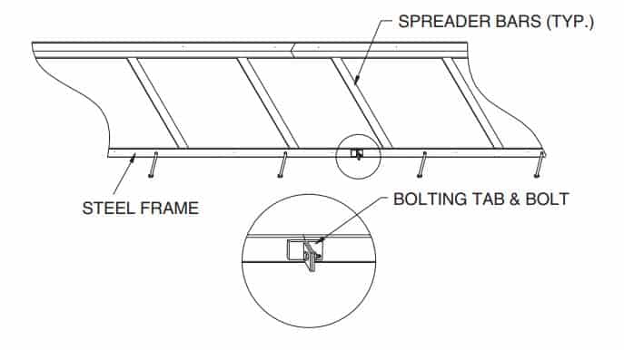 Frames are supplied in 10′ lengths. These frames are ideal for forming on long runs of trench. Frames are shipped in sets with a spreader bar welded to angles to give proper width for required grate. Stud anchors are included to tie into reinforcing. These frames have tabs and holes to bolt sections together during forming. Precut final lengths and turns are available. Frames can be supplied with painted or galvanized finish. These frames are available with steel end plate, if required. Contact your sales or customer service representative for more information.