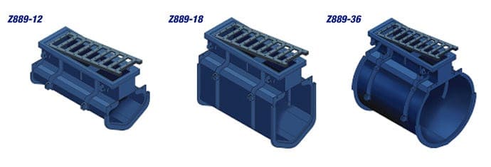 The Z889 High Capacity Clean out Port fits the Z88-12-18-36 Series slot drains. At 24″ long, the clean-out offers pedestrian, FAA and H-20 grates to accommodate any load class requirement.