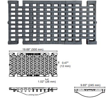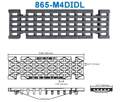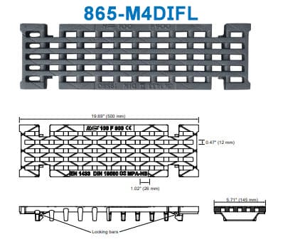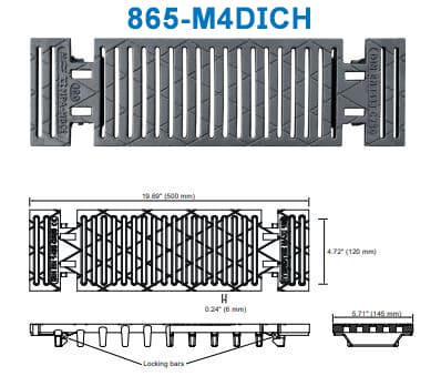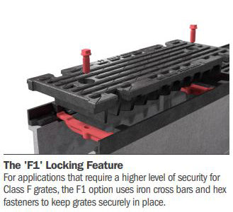 The Maxi System by Sioux Chief consists of several variations to meet the needs of your project. Trench Drain Systems carries the Maxi 100, 150, 200, and 300 series. These systems are metric and provide widths that range from 100mm to 305mm (4″ to 12″) at the throat or inside dimension of the channel. Grates will normally be 2″ wider than the channel leaving an inch on each side to sit within the channel’s integrated ductile iron rails. All systems can withstand Load Classes C – F with appropriate grates and proper installation.