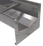 A stainless steel drainage solution for applications that require high capacity flow to redirect liquids. The OD of the channels is 16″ with the throat measuring 10″ wide. Made of 16 ga stainless steel channels, they feature a built-in 1% slope.