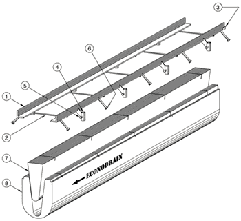EconoDrain trench forming system is a pre-sloped system with an expanded polystyrene (EPS) form that offers fast and affordable drainage for a variety of applications. Designed in 4”, 6”, 8”, 12”, 18” and 24” system widths, EconoDrain trench drain is installed in driveways, courtyards, commercial loading bays and more.